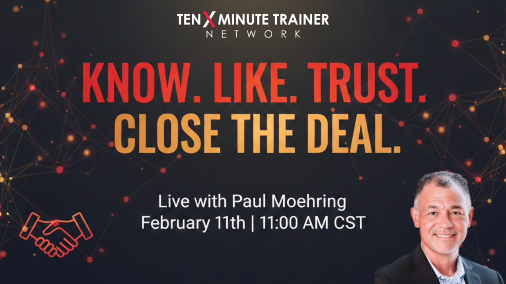 On February 11, Paul Moehring goes live on the Ten-Minute Trainer Network to break down one of the most well-known (and often misunderstood) principles in sales: People buy from people they know, like, and trust.